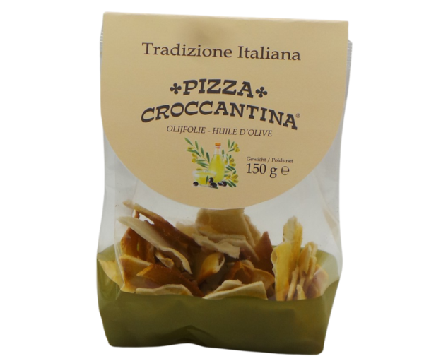 Pizza Croccantina à l’huile d’olive est une spécialité de la gastronomie italienne, trouvant ses origines dans la région du Latium (Rome). Lentement cuite au four, sans ajout d’huile ni de matière grasse, elle ne contient ni exhausteur de goût, ni conservateur, ni colorant artificiel.